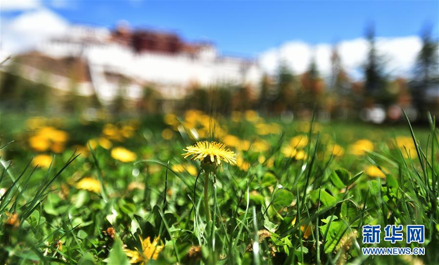 这是5月6日拍摄的布达拉宫附近的绿地。 当日是二十四节气中的立夏,拉萨阳光明媚,气候宜人,人们纷纷走到户外享受阳光。 新华社记者 觉果 摄