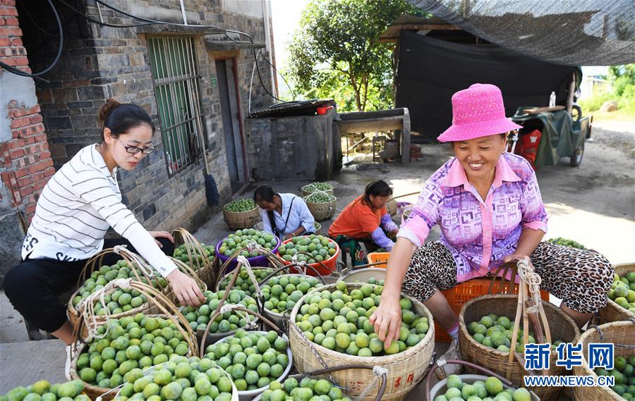 巫山县曲尺乡柑园村村民在挑拣脆李(2018年6月26日摄)。 新华社记者 王全超 摄