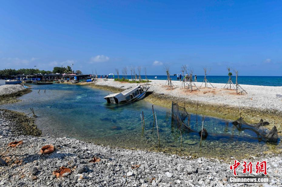 近日,搭乘“长乐公主”邮轮前往西沙旅游的游客,登上西沙鸭公岛游览。鸭公岛面积约0.01平方公里,全岛没有一粒沙子,全部由细小零碎的珊瑚礁石和贝克堆砌而成,岛中央有一个随海潮涨落的泻湖。图为鸭公岛上的泻湖。骆云飞 摄