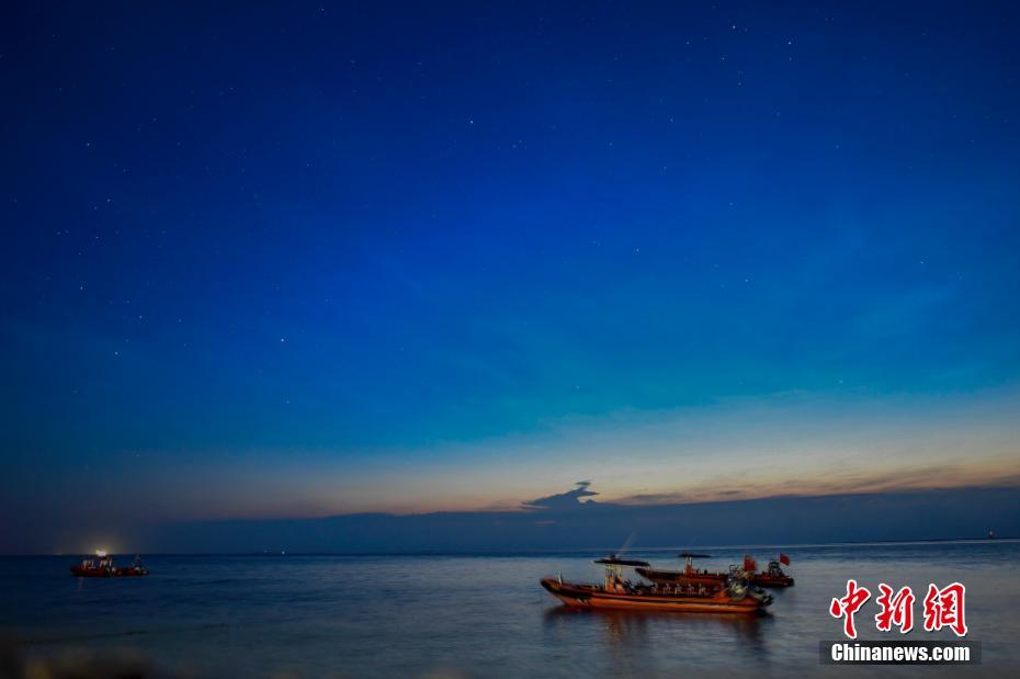 近日,搭乘“长乐公主”邮轮前往西沙旅游的游客,登上西沙鸭公岛游览。鸭公岛面积约0.01平方公里,全岛没有一粒沙子,全部由细小零碎的珊瑚礁石和贝克堆砌而成,岛中央有一个随海潮涨落的泻湖。图为鸭公岛上的星空。骆云飞 摄
