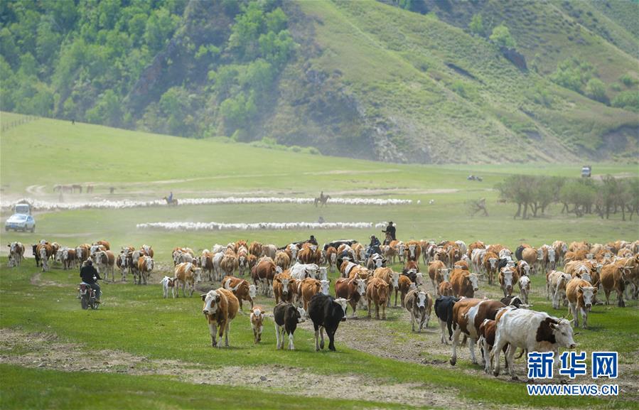 6月1日,牧民在阿鲁科尔沁草原上放牧。