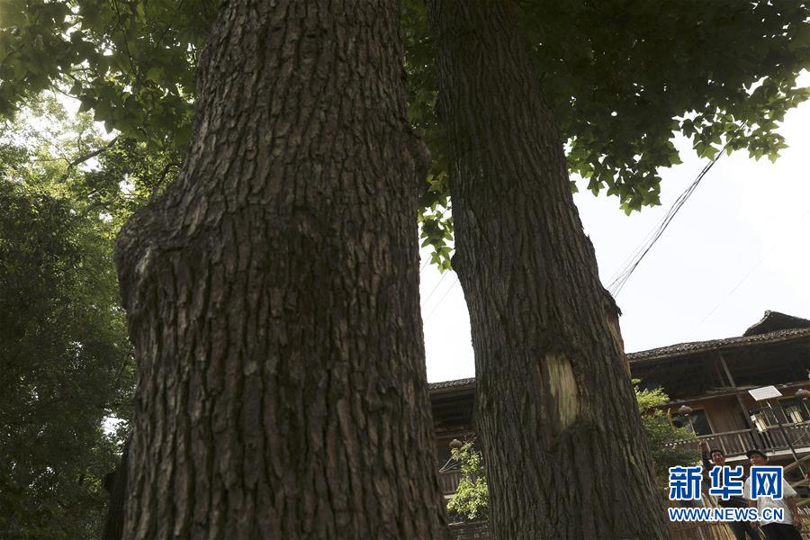 6月2日,村民在古枫寨观察古枫的生长情况。 位于重庆市黔江区小南海镇桥梁村的古枫寨,是一座有着300多年历史的土家族院落,这里风光秀丽、民风纯朴。院落四周有着100多棵古枫树,因而得名“古枫寨”。院落里坐落着40多幢土家族木质吊脚楼,当地人保留着土家族生产方式与生活风俗。近年来,桥梁村被逐步打造成民族风情村,吸引越来越多的游客来此观光旅游。 新华社发(杨敏 摄)