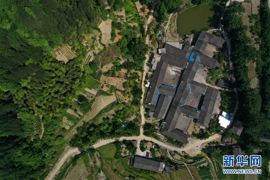 6月2日无人机拍摄的古枫寨一角。 位于重庆市黔江区小南海镇桥梁村的古枫寨,是一座有着300多年历史的土家族院落,这里风光秀丽、民风纯朴。院落四周有着100多棵古枫树,因而得名“古枫寨”。院落里坐落着40多幢土家族木质吊脚楼,当地人保留着土家族生产方式与生活风俗。近年来,桥梁村被逐步打造成民族风情村,吸引越来越多的游客来此观光旅游。 新华社发(杨敏 摄)