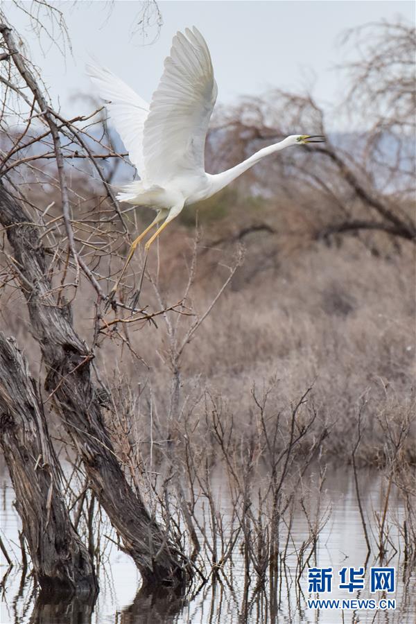 6月9日,一只白鹭在新疆乌伦古湖国家湿地公园飞翔。 进入夏季以来,在新疆阿勒泰地区的乌伦古湖国家湿地公园,栖息此地的大量迁徙鸟类成为一道靓丽的风景。 新华社记者 丁磊 摄