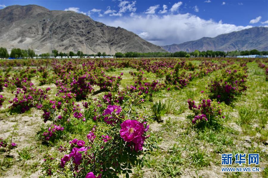 这是6月9日拍摄的拉萨市达孜区现代农业产业园玫瑰种植基地一角。 近日,在西藏拉萨市达孜区现代农业产业园,由西藏玫瑰生物科技发展有限公司种植的200亩玫瑰盛开,吸引众多游客前来观赏采摘。 新华社记者 张汝锋 摄