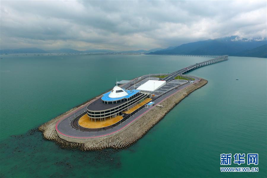 这是2018年10月18日无人机拍摄的港珠澳大桥东人工岛。 新华社记者 梁旭 摄