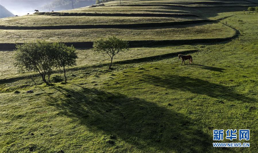 6月13日拍摄的关山草原景色。 关山草原位于陕西省陇县境内,这里风光优美,有森林、草原、河流、峡谷等自然景观。夏日里的关山草原气候凉爽,草原上各色野花盛开,成为人们避暑度假的好去处。 新华社记者 陶明 摄