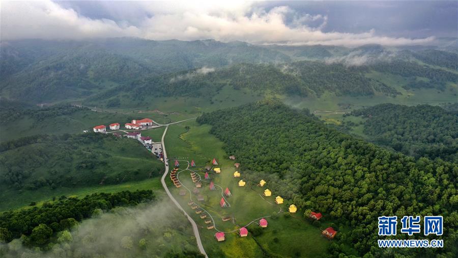 6月12日无人机拍摄的关山草原房车营地酒店。 关山草原位于陕西省陇县境内,这里风光优美,有森林、草原、河流、峡谷等自然景观。夏日里的关山草原气候凉爽,草原上各色野花盛开,成为人们避暑度假的好去处。 新华社记者 陶明 摄