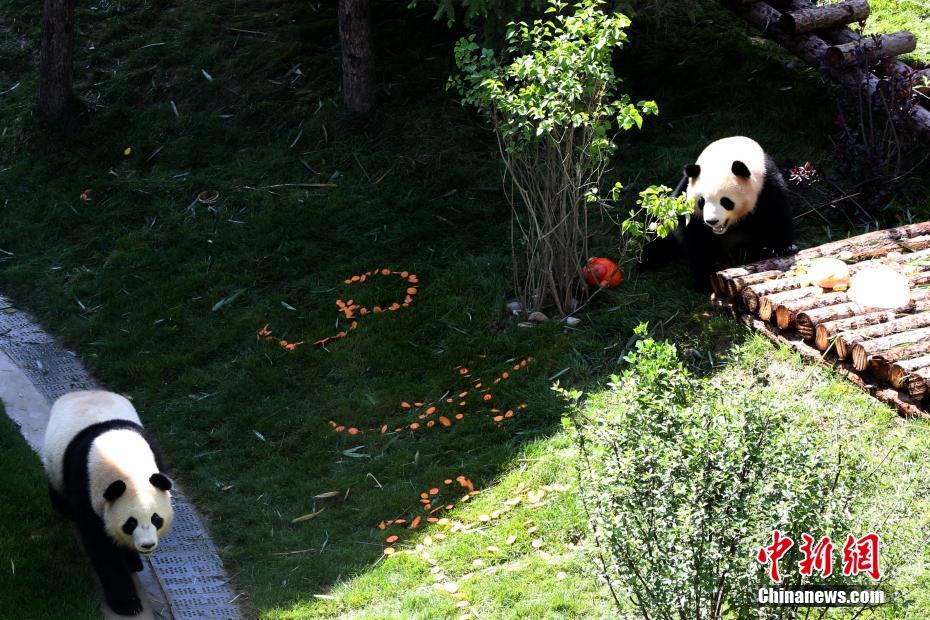 6月30日,“2016级”大熊猫“奇果”和“园满”在青海西宁迎来3岁生日,这也是大熊猫“落户”青藏高原后的首个生日。大熊猫“奇果”和“园满”来自成都大熊猫繁育研究基地,于本月初“入驻”位于青海西宁青藏高原野生动物园内的熊猫馆,系两只亚成年大熊猫“小公主”,分别出生于2016年7月1日和2016年6月29日。 中新社记者 罗云鹏 摄