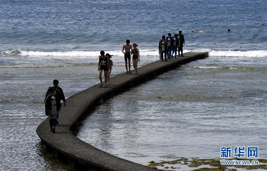 6月29日,游客在绿岛海岸边游玩。新华社记者 朱祥 摄