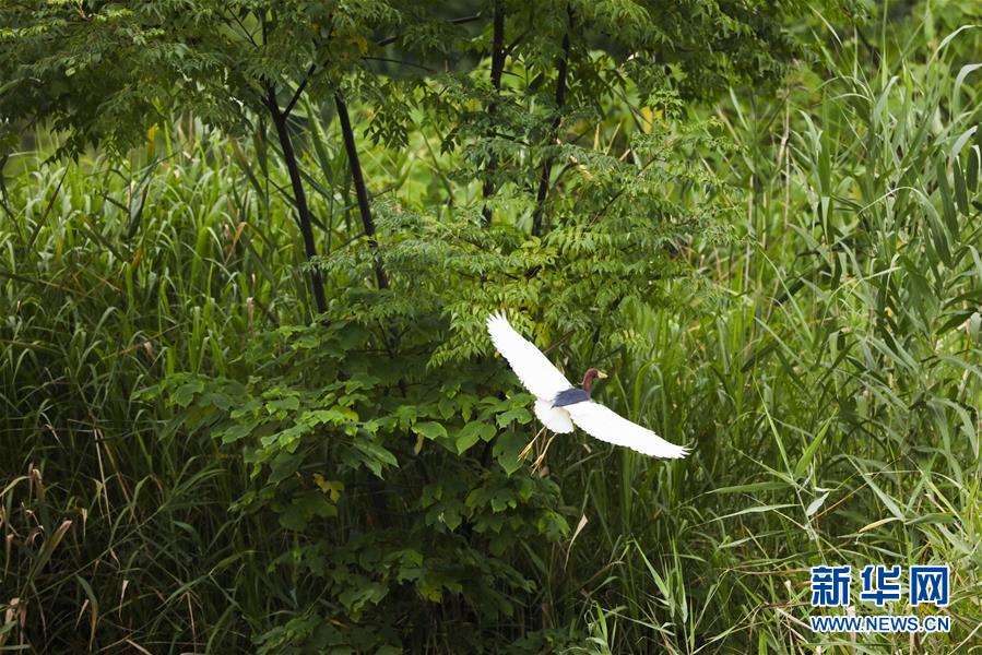 7月2日,一只水鸟在下渚湖湿地上飞翔。 新华社记者 兰红光 摄