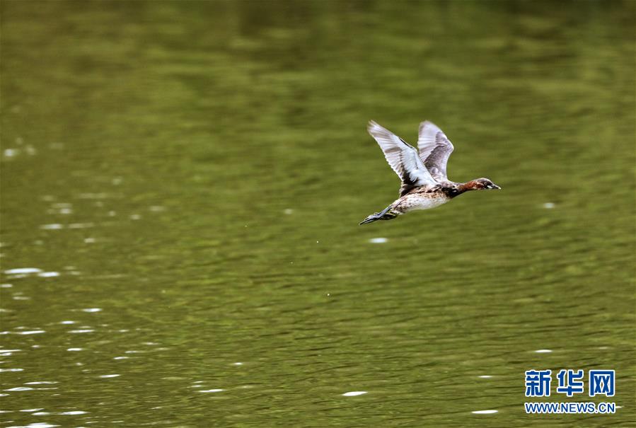 7月2日,野鸭在下渚湖湖面上飞翔。 新华社记者 兰红光 摄