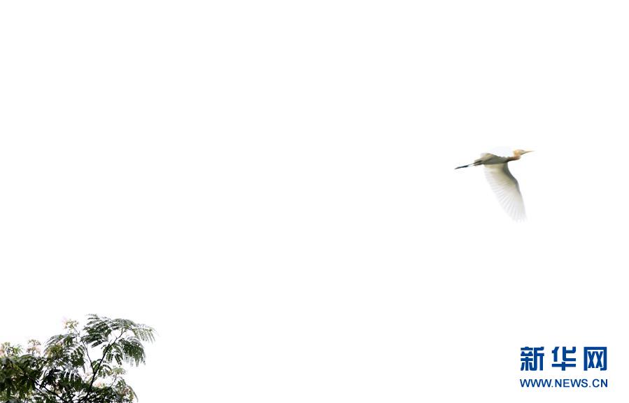 7月2日,一只白鹭在下渚湖上空飞翔。 新华社记者 兰红光 摄