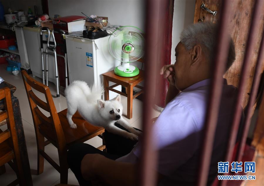 7月4日,在新市古镇的一间老屋里,一只宠物狗跟主人互动。 新市古镇位于浙江省德清县,建筑风貌完整、市井气息浓厚,是江南水乡古镇的典型代表。炎炎夏日,古镇绿水环绕,绿树成荫,吸引众多游客。 新华社记者 翁忻旸 摄