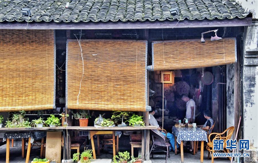 7月4日拍摄的新市古镇一角。 新市古镇位于浙江省德清县,建筑风貌完整、市井气息浓厚,是江南水乡古镇的典型代表。炎炎夏日,古镇绿水环绕,绿树成荫,吸引众多游客。 新华社记者 李欣 摄