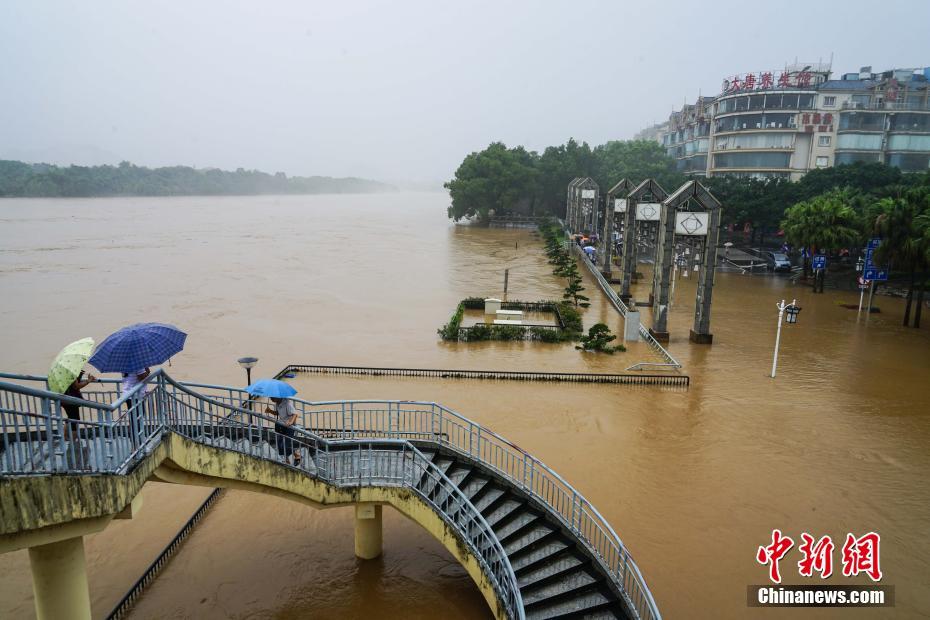 图为漓江水漫过桂林解放桥滨江路,现场一片汪洋。 唐梦宪 摄
