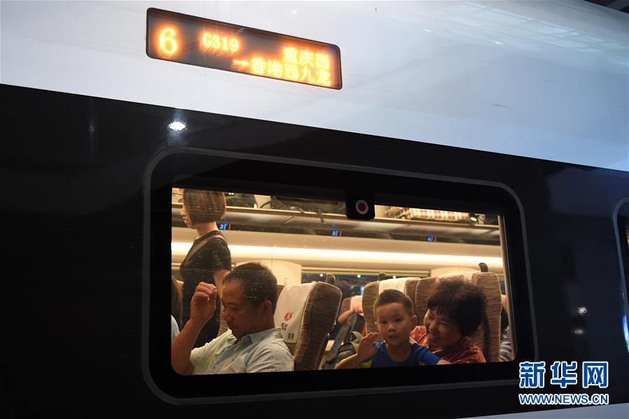 7月11日,一位小朋友在G319次列车上向窗外挥手。 当日,重庆至香港直达高铁正式开通,此次首发的G319次复兴号列车运行速度350km/h,沿途经停遵义、贵阳东、桂林西、肇庆东、广州南和深圳北站。列车由重庆西站至香港西九龙站全程运行需7小时37分钟,全程票二等座票价为660元。目前内地与香港联通的高铁车站已增加到58个。 新华社记者 唐奕 摄