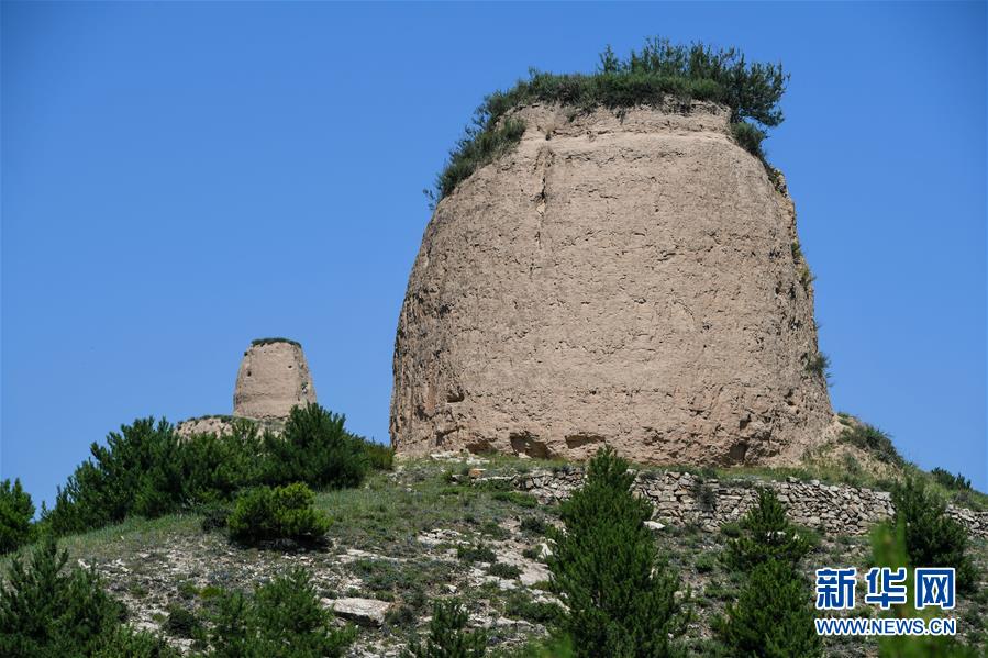 这是7月25日拍摄的栜木塔长城烽火台。 在内蒙古呼和浩特市清水河县东南部,分布着长155公里的明长城,这段明长城保存完整、规模浩大,特别是以栜木塔村为中心东西方向长10余里的栜木塔长城更显气势宏伟。 新华社记者 彭源 摄