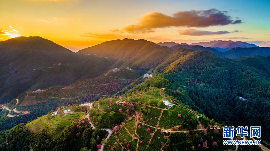 这是夕阳时分的云南南涧彝族自治县无量山樱花谷一景(2017年12月16日无人机拍摄)。 新华社记者胡超摄