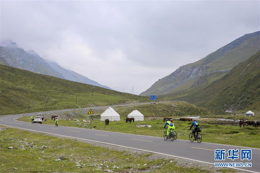 骑行爱好者在独库公路上骑行(8月17日摄)。 新疆独库公路为国道217线独山子——库车段,纵贯天山南北,串联冰川、湖泊、森林、草原等多种景观形态,牧民毡房遍布沿线,牛羊散落在高低起伏的草场上,兼具自然与人文之美,成为自驾游客、骑行徒步爱好者在新疆旅游的热门线路之一。 近日,阴雨绵绵,天山山脉被云雾环绕,独库公路展现出不一样的美,令游客流连忘返。 新华社记者 李鹏 摄