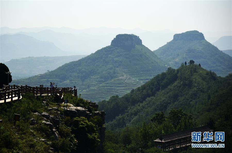 8月30日,游客在岱崮地貌景区游览。 山东岱崮地貌景区地处沂蒙山腹地。该地貌在山东省蒙阴县岱崮镇连绵聚集,是继“丹霞地貌”“喀斯特地貌”“嶂石岩地貌”“张家界地貌”之后的中国第五大造型地貌。2019年,以岱崮地貌景区为核心的沂蒙山地质公园被联合国教科文组织正式授予“世界地质公园”称号。 新华社记者 王凯 摄