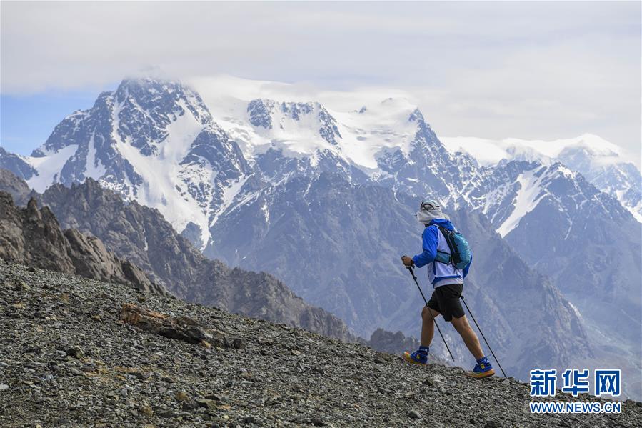 一名徒步爱好者在新疆乌鲁木齐市达坂城区白杨沟内越野游玩(2018年7月29日摄)。 新华社记者 胡虎虎 摄