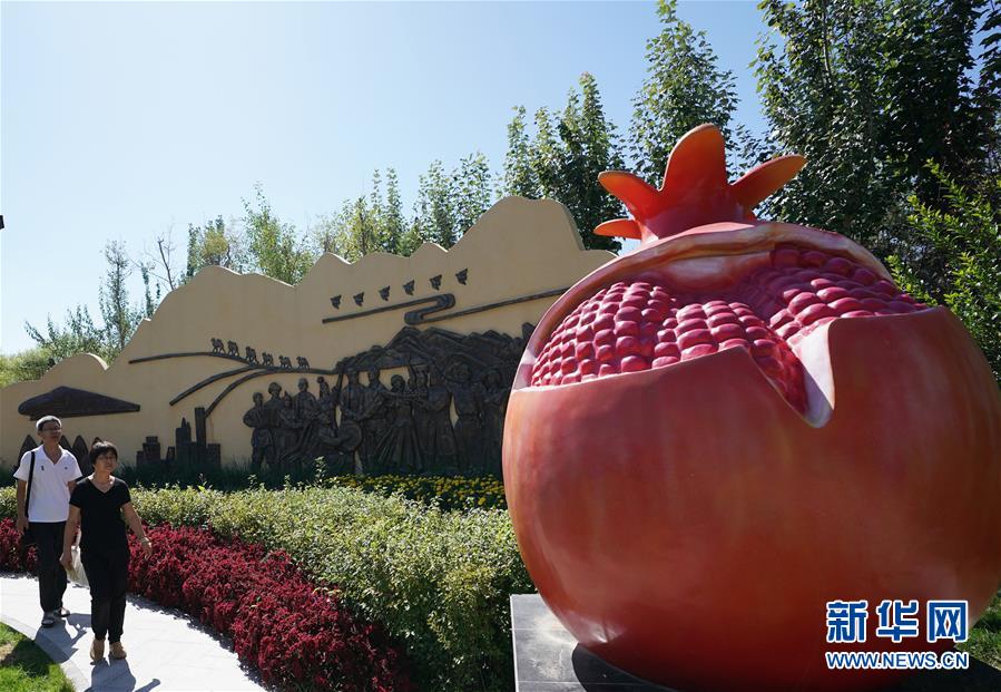 9月16日,参观者在北京世园会新疆园参观。 新华社记者 鞠焕宗 摄