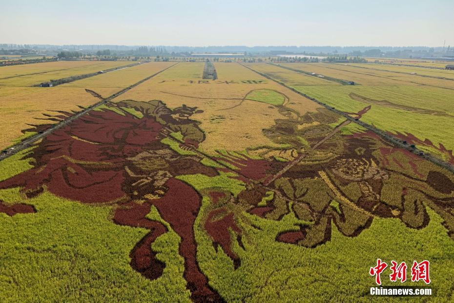 宁夏巨幅稻田画绘就丰收颜色