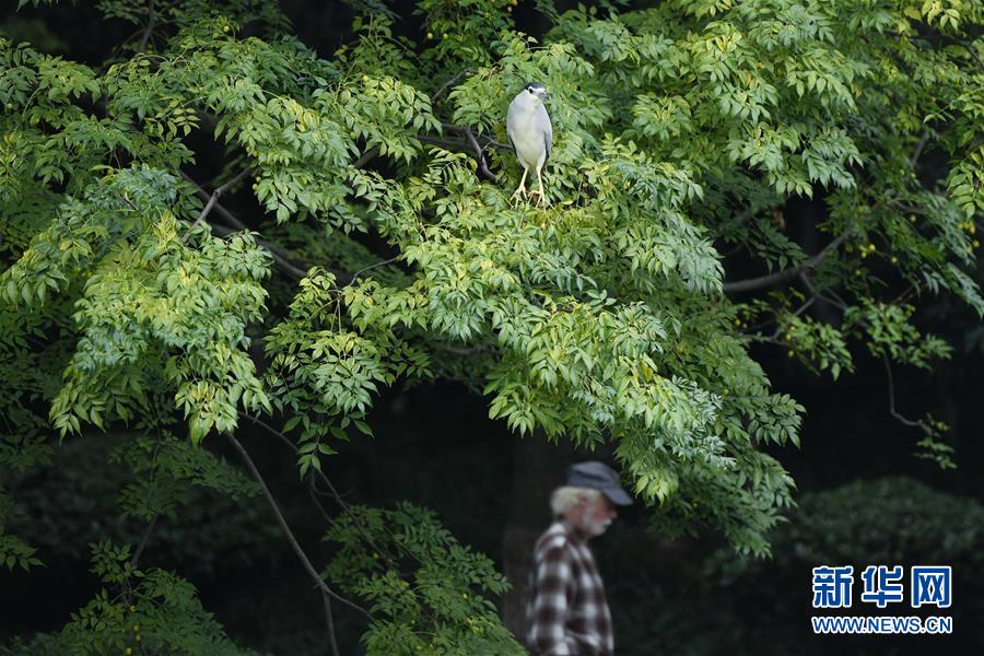10月8日,一只鸟在环城公园的树上停留。 秋日时节,位于安徽合肥的环城公园风景宜人,美如画卷。 新华社记者 张端 摄