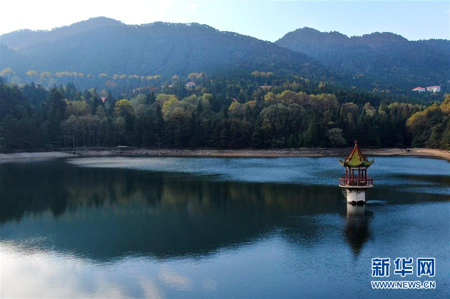 这是10月10日在庐山风景区内拍摄的芦林湖(无人机拍摄)。 金秋时节,江西省庐山风景区层林尽染,景色如画。 新华社记者 胡晨欢 摄