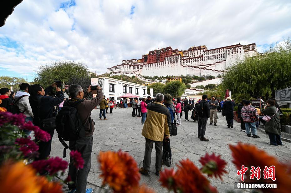 10月15日,游客前往布达拉宫参观。当日,“冬游西藏”正式启幕。西藏自治区官方对外发布消息,决定在2019年10月15日至2020年3月15日期间,实施第三轮“冬游西藏”市场促进优惠政策。优惠政策涵盖旅游景区、旅行社、星级酒店等各个方面。在旅游景区方面,除寺庙景区外,全区国有3A级(含3A级)以上景区免费游览,国有3A级以下和非国有A级景区在淡季价格基础上减半。中新社记者 何蓬磊 摄