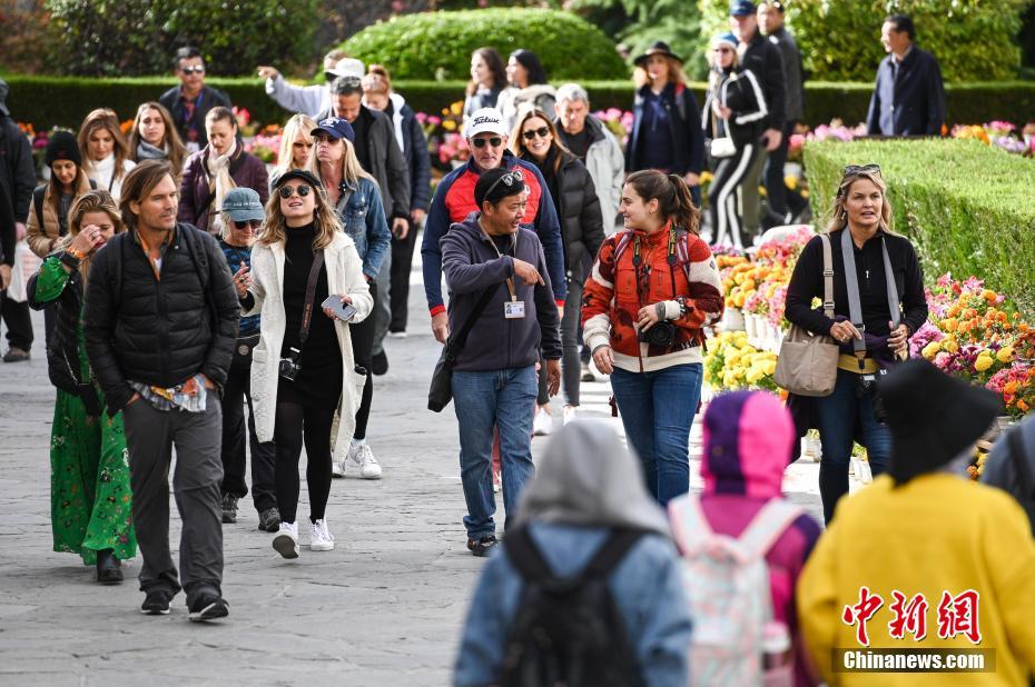 国内外游客前往布达拉宫参观。中新社记者 何蓬磊 摄