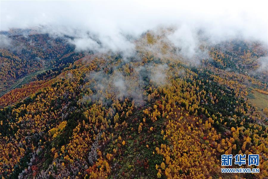 这是10月16日无人机拍摄的山西庞泉沟国家级自然保护区。 当日,雨后的山西庞泉沟国家级自然保护区云雾缭绕,景色迷人。庞泉沟国家级自然保护区位于山西省交城县和方山县交界处,森林覆盖率高达74%,是黄土高原上难得的绿洲,有“华北绿肺”之称。 新华社记者 詹彦 摄