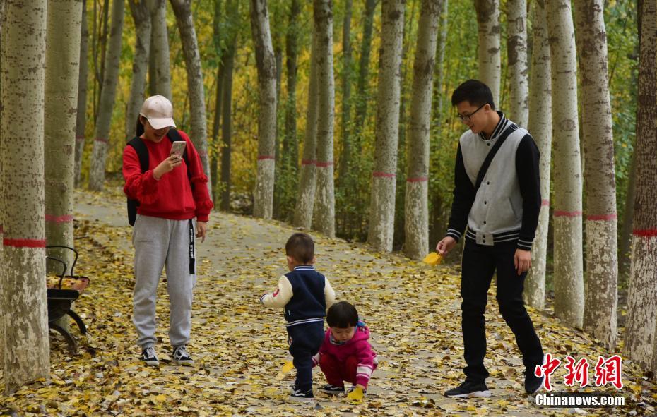 10月29日,宁夏银川凤凰公园秋景正美,吸引市民前来观光游玩,感受秋日的美景。中新社记者 于晶 摄