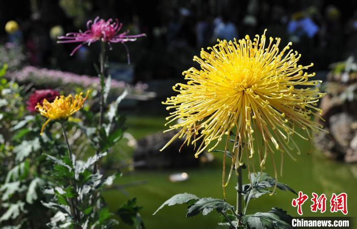 图为正在福州西湖公园举行的菊花展吸引了许多市民和游客前来赏菊。 张斌 摄