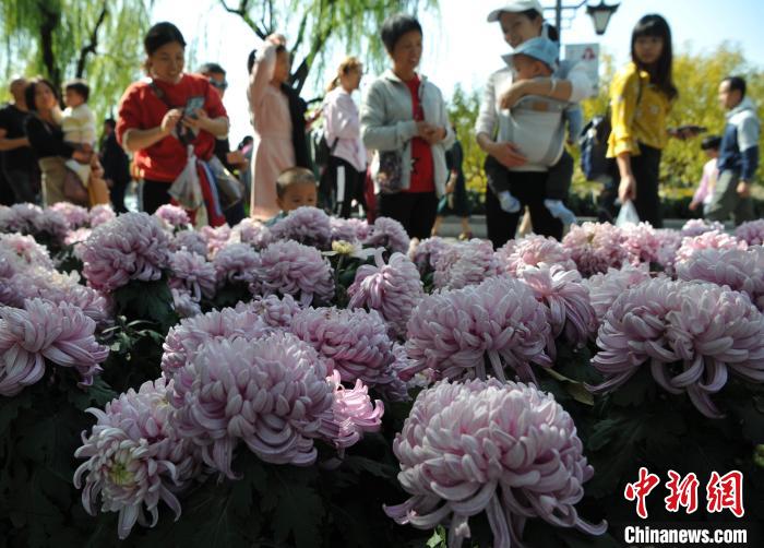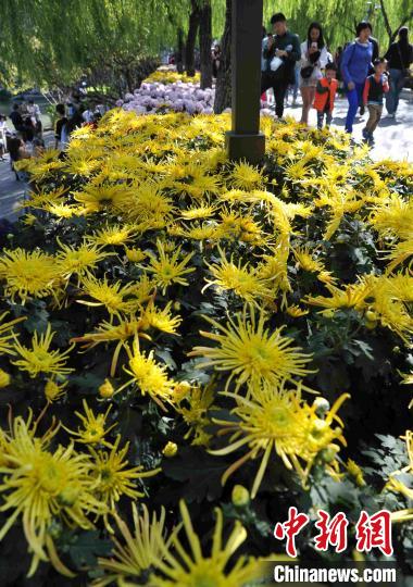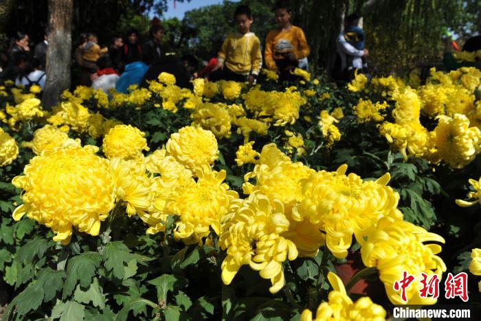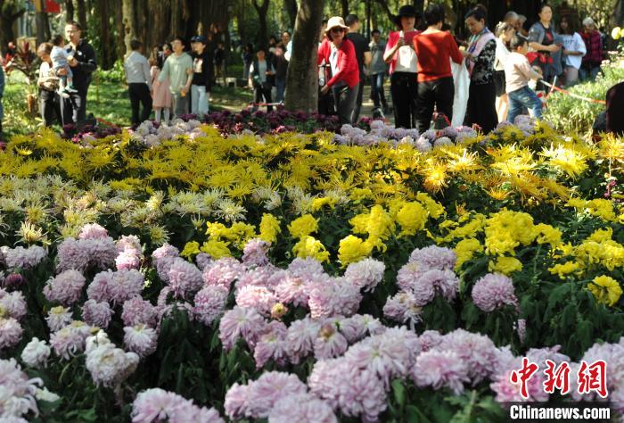图为福州西湖公园菊花盛开吸引了许多市民前来游玩赏菊。 张斌 摄