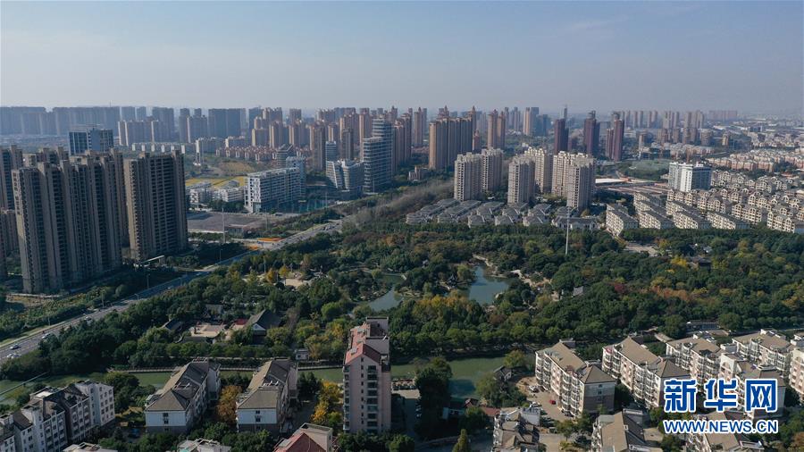 江苏昆山花桥经济开发区花溪公园及其周边景色(11月16日无人机拍摄)。近年来,江苏昆山积极践行绿色发展理念,加强生态环境保护,打造“宜居花园”城市。其辖区内的花桥经济开发区打造了一批森林覆盖率高、环境优美的城市公园,并在其中修筑慢行步道,打造人们聚会休闲的“室外会客厅”,让市民和游人“转角遇到绿”。 新华社记者 季春鹏 摄