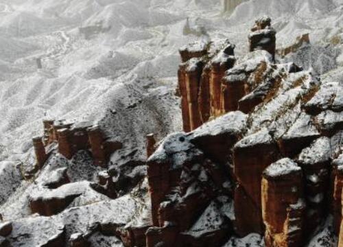 甘肃张掖初冬雪浴丹霞分外妖娆