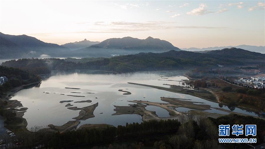 这是11月15日无人机拍摄的安徽黟县奇墅湖晨景。新华社记者 张笑宇 摄