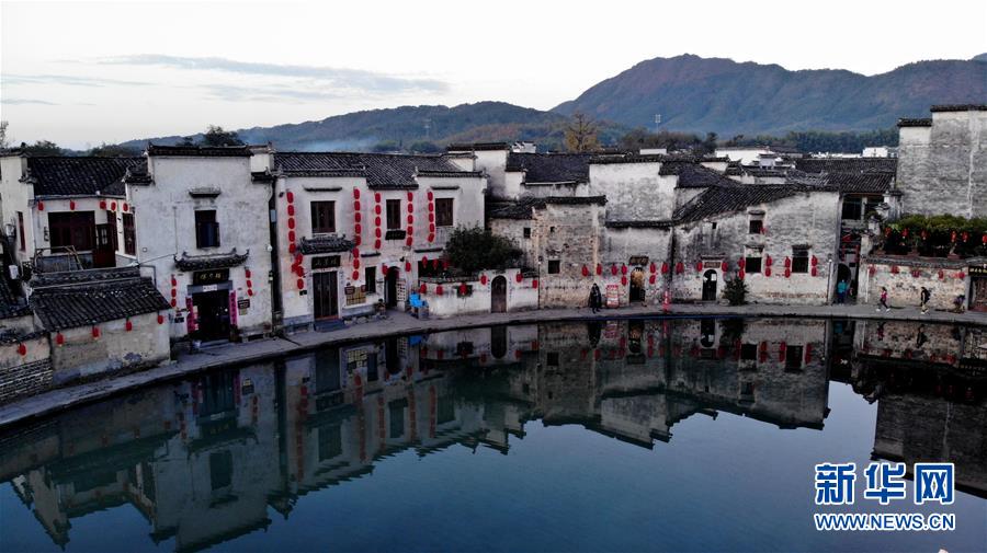 这是11月15日无人机拍摄的宏村月沼景色。新华社发(黄博涵摄)