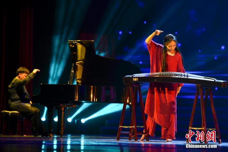 11月22日晚,2019年(第二十届)海南国际旅游岛欢乐节在海南海口开幕。本届欢乐节包括开幕式在内的17项主要活动将一直持续至12月31日,并推出节庆会展、文艺演艺、体育赛事等200余项丰富多彩的活动。图为欢乐节开幕式上表演的乐器演奏《定风波》。 中新社记者 骆云飞 摄