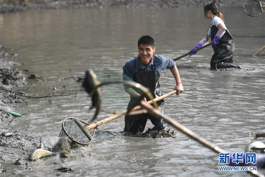 11月24日,游客在西溪湿地体验“干塘”捕鱼。 近日在杭州西溪国家湿地公园,渔夫们抽掉塘水清理淤泥,一批游客借用渔夫们的下水裤,体验“干塘”捕鱼。 “干塘”是杭州西溪一带村民的传统生产习俗,渔户在冬季将鱼塘内的水抽掉,清挖淤泥,以便第二年可以更好地养鱼。 新华社记者 黄宗治 摄