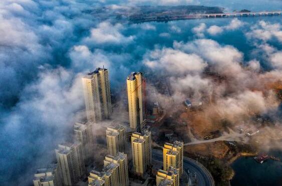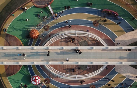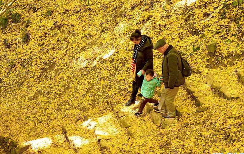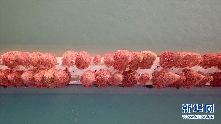 12月10日,游客在湖南烈士公园年嘉湖的游道上行走(无人机拍摄)。
