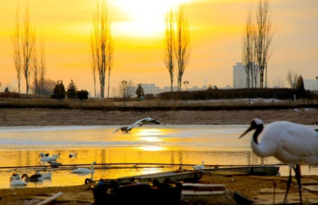 初冬时节,位于湖南省长沙市开福区的湖南烈士公园年嘉湖畔暖阳照耀,色彩缤纷的树叶与年嘉湖碧水构成一幅美丽的冬日画卷。