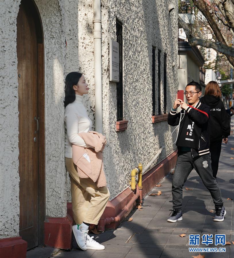 1月6日,在上海武康路上,人们在暖阳下拍照。 当日是小寒节气,但上海暖似阳春。据上海中心气象台发布的数据,上海当日最高气温超过20摄氏度。 新华社记者 刘颖 摄