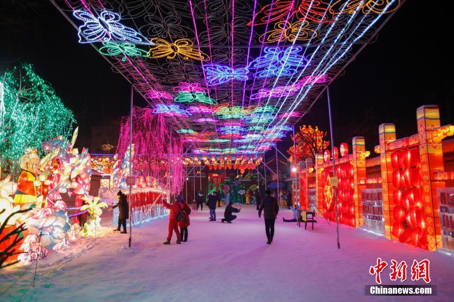 1月9日晚,首届哈尔滨道台府冰雪灯会吸引大批游客前来观赏。灯会以道台府特有的百年风貌和历史故事为内涵,将年节文化中最具代表性的非遗彩灯与哈尔滨的冰雕雪塑艺术无界融合,经典再现了哈尔滨百年前的繁荣场景,为中外游客奉上了一场极致体验的视觉盛宴和新春文化大餐。图为游客在园区内赏灯。 中新社记者 吕品 摄
