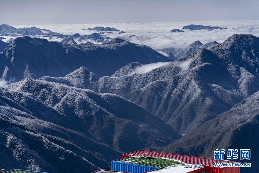 这是1月12日在湖北五峰国际滑雪场拍摄的山区雪景。 当日,湖北五峰国际滑雪场雪后初晴,云雾和高山雪景勾勒出一幅幅美丽的图画。五峰国际滑雪场位于五峰土家族自治县湾潭镇,最高处海拔2129米。 新华社记者 杜华举 摄