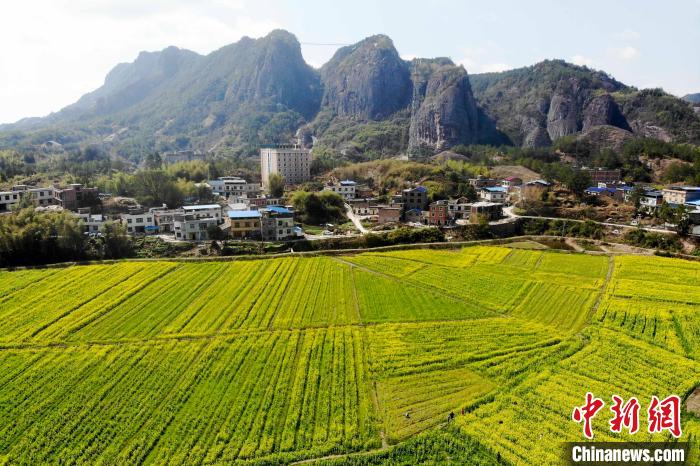 丹霞地貌中的万亩油菜花盛开。 杨华峰 摄