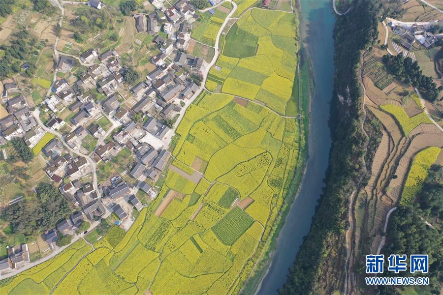 3月20日拍摄的贵州省遵义市凤冈县新建镇长碛古寨一景(无人机照片)。 新华社记者 杨楹 摄