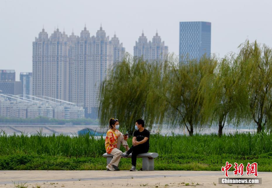 3月26日,武汉汉口江滩,市民坐在长凳上小憩。武汉江滩日前分批有序恢复开园。中新社记者 张畅 摄